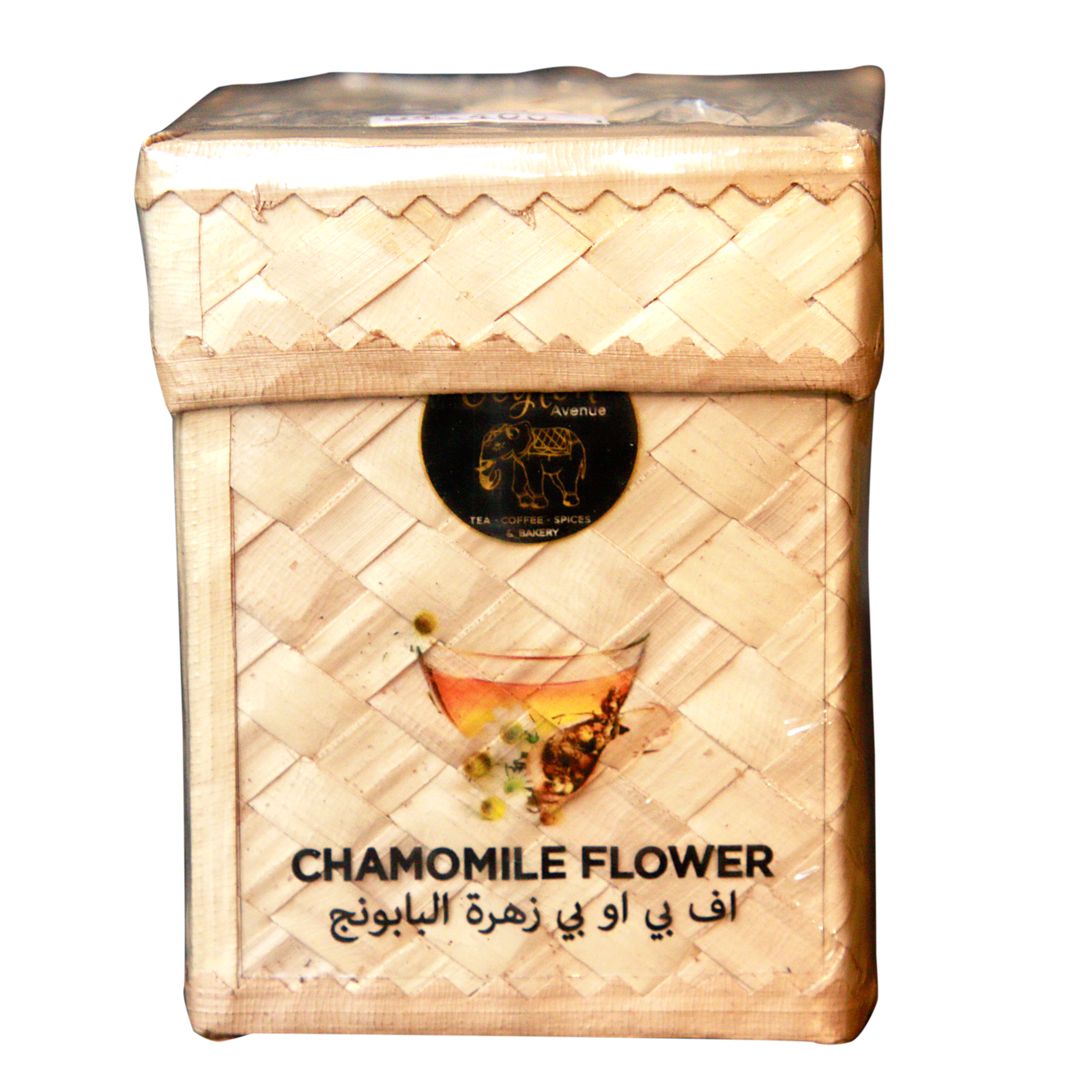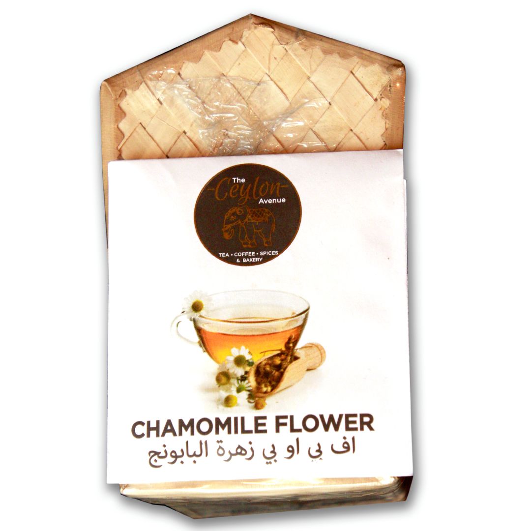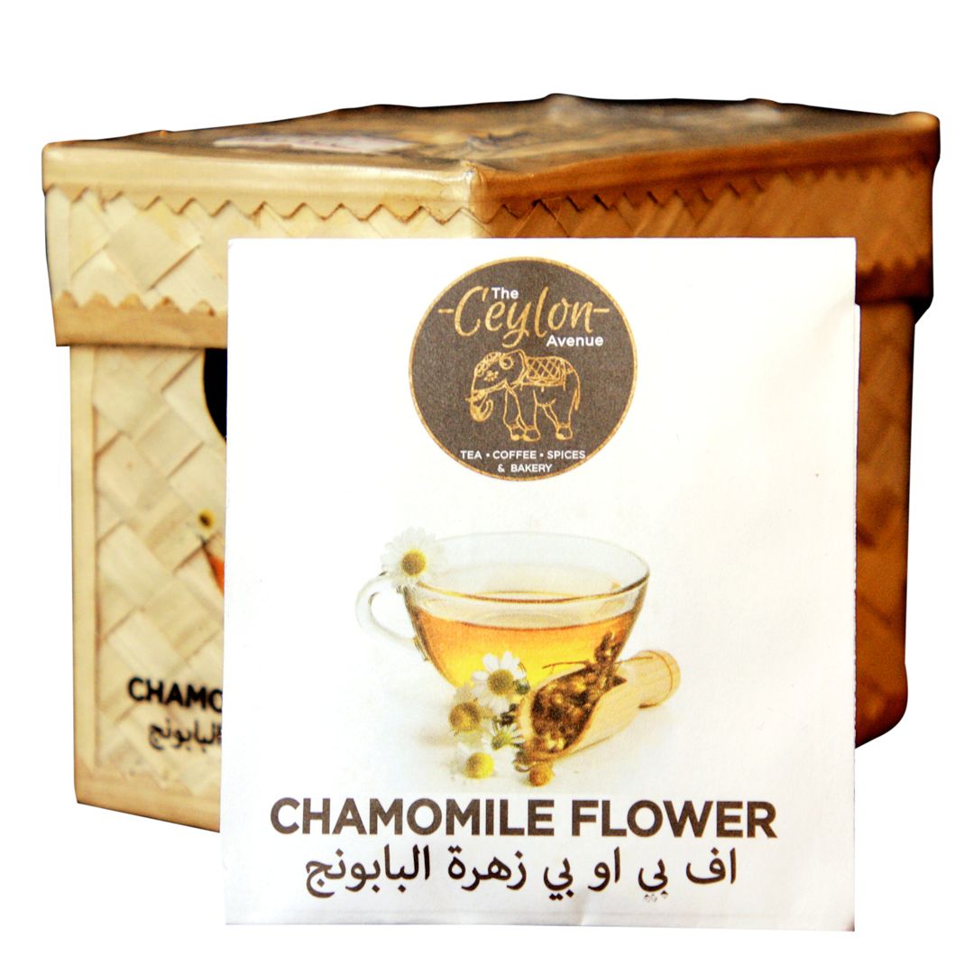 Floral and relaxing—chamomile tea in a beautiful palm leaf box.